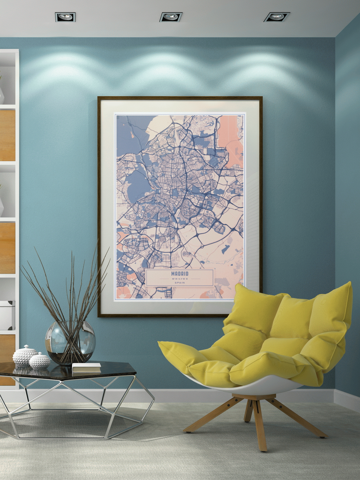 Dieses Stadtplan Madrid Poster ist die perfekte Wahl für alle, die den Geist Madrids in ihre Einrichtung bringen möchten – ein dekorativer Mix aus Geschichte, Kultur und spanischer Lebensfreude.